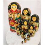 This beautiful traditional Russian matryoshka is titled “Russian Village Matryoshka ” This nesting doll is hand painted and hand made in Moscow, Russia by artist Maltseva G.The matryoshka is 11 inches tall and 5 inches in diameter. This piece has a total of 10 nests. It can make a great gift for people of all ages.